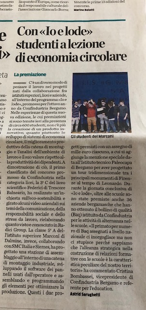 8 maggio 2019: La classe 3CS vince il primo premio al concorso "Industriamoci, accendi un’idea", ed. 2019